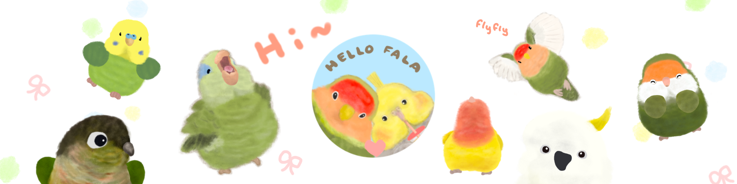 Hellofala由是由主角玄鳳鸚鵡Fafa、西瓜色愛情鳥Lala以及多種鸚鵡角色組成,描述夥伴們的友愛又暖心的互動,希望能讓觀眾感到喜悅和療癒~